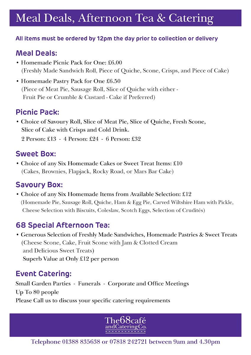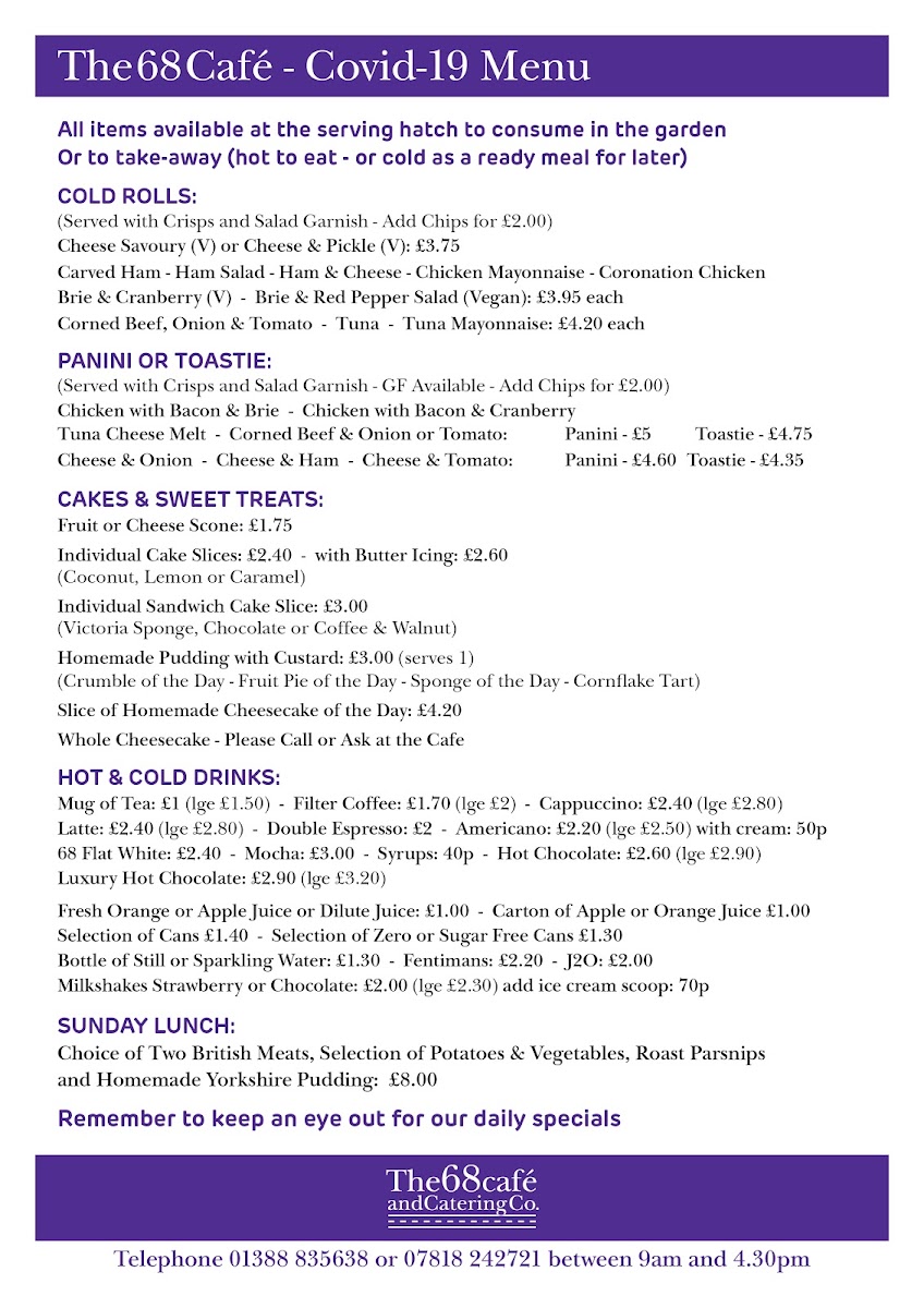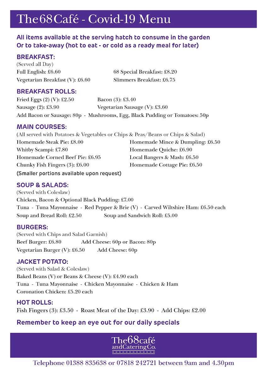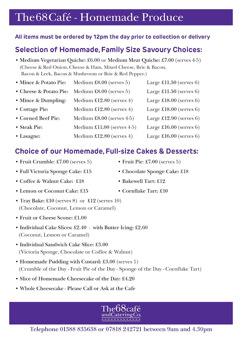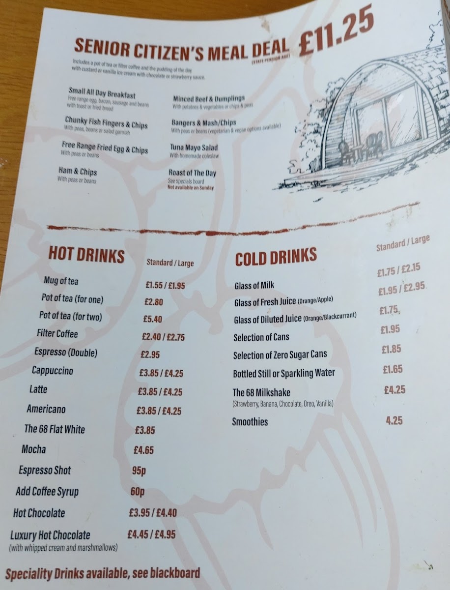 Located along the A68 in Bishop Auckland, The 68 Cafe is a welcoming roadside stop that offers a hearty, down-to-earth menu perfect for both locals and passersby. The The 68 Cafe Menu champions classic British comfort food served in generous portions and with friendly, no-nonsense service that reflects the charm of the countryside setting.